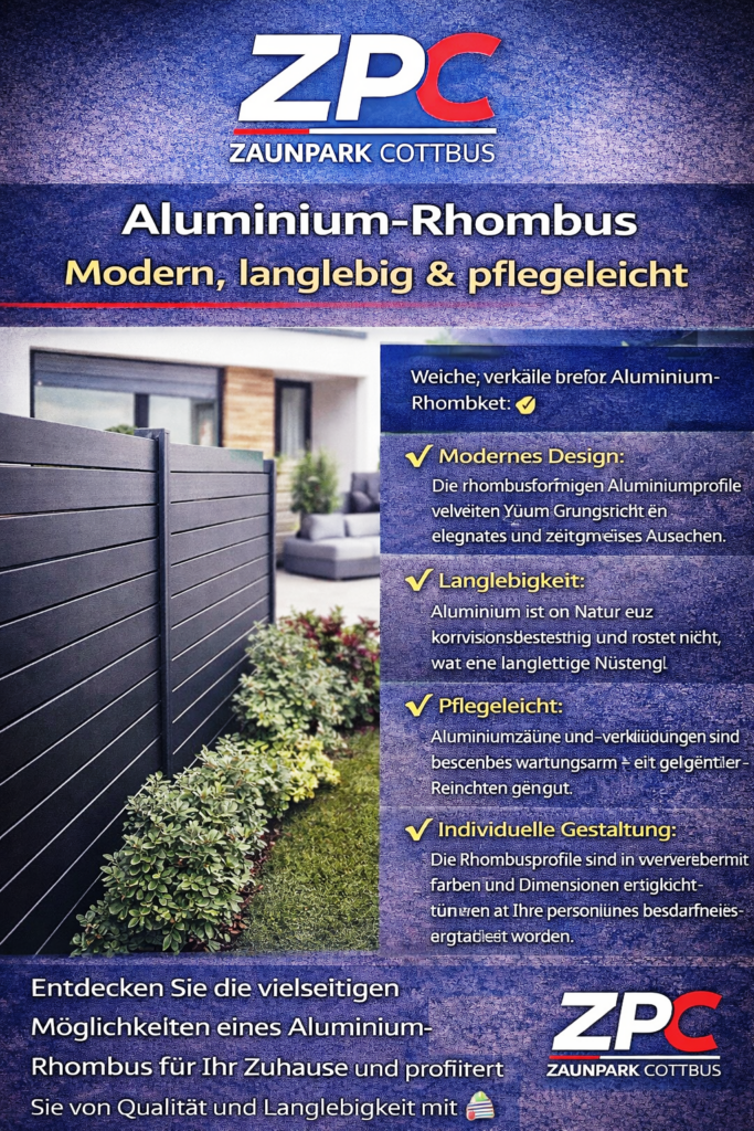Sie suchen eine stilvolle und dauerhafte Lösung für Sichtschutz oder Grundstückseinfriedung? Aluminium-Rhombusprofile sind eine moderne Alternative zu klassischen Zäunen aus Holz oder Stahl.