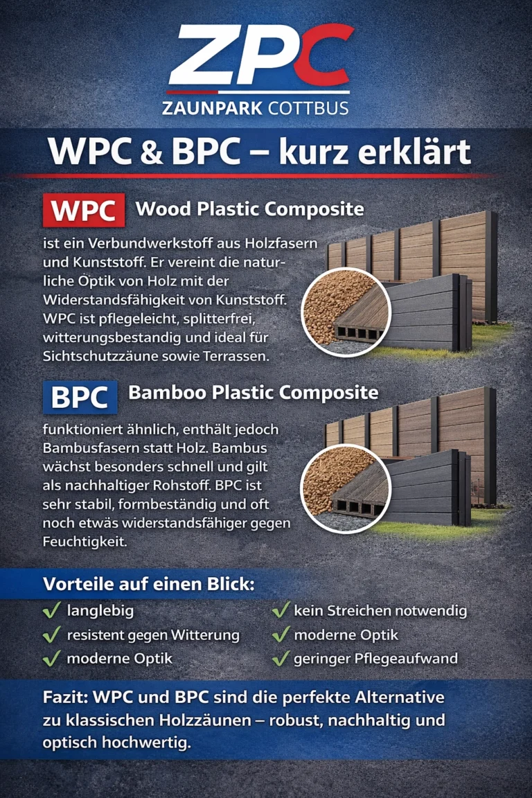 Fazit: WPC und BPC sind die perfekte Alternative zu klassischen Holzzäunen – robust, nachhaltig und optisch hochwertig.